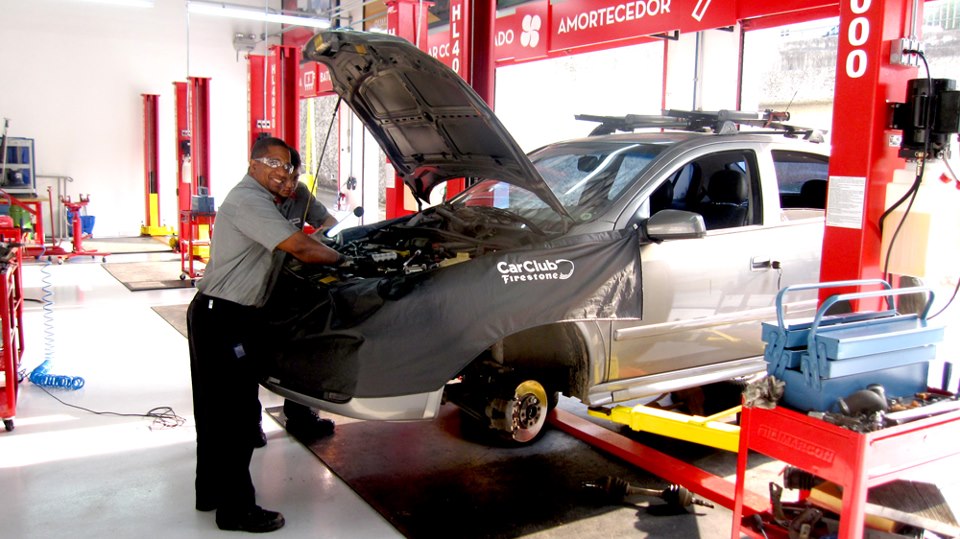 Além da venda de pneus, o CarClub Firestone oferece serviços de balanceamento, alinhamento em 3D, suspensão, injeção eletrônica, baterias, troca de óleo, limpeza e conserto de ar condicionado, sistema de freios, reparos elétricos, e mecânica leve.