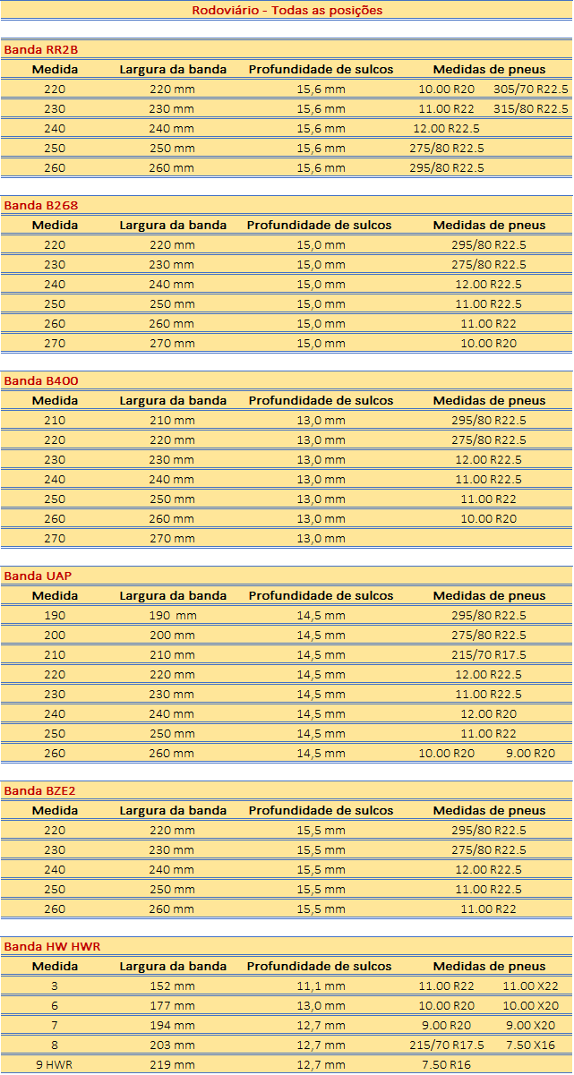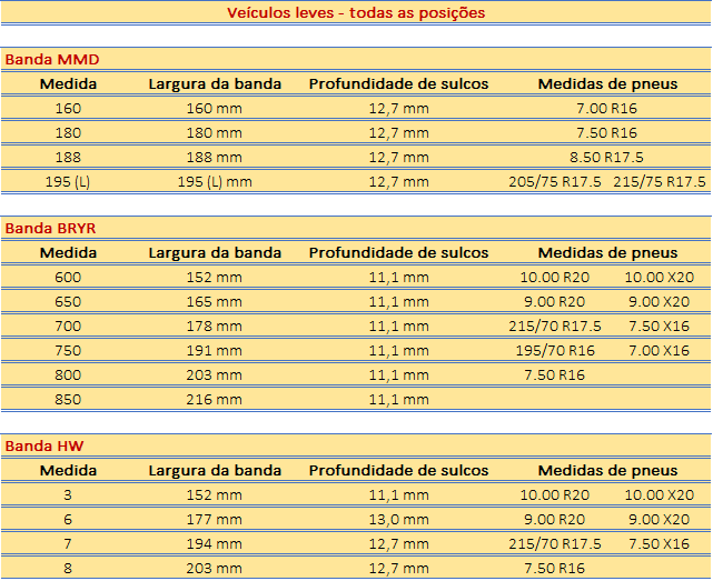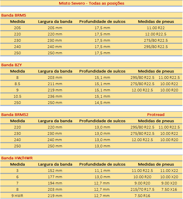 - A BRMS2 pode ser aplicada nas principais dimensões de pneus: 295/80R22.5; 275/80R22.5; 11.00R22 e 10.00R20.
