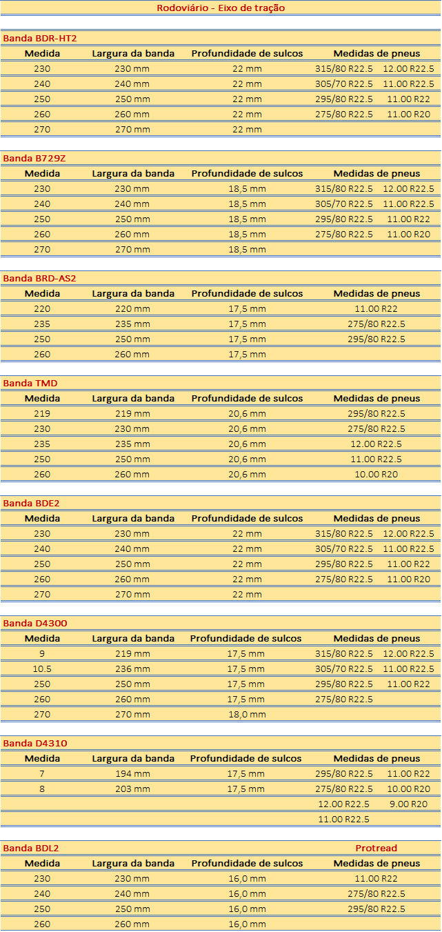 - A BDX2 atende as principais dimensões de pneus na posição tração: 295/80R22.5; 275/80R22.5; 11.00R22 e 10.00R20.