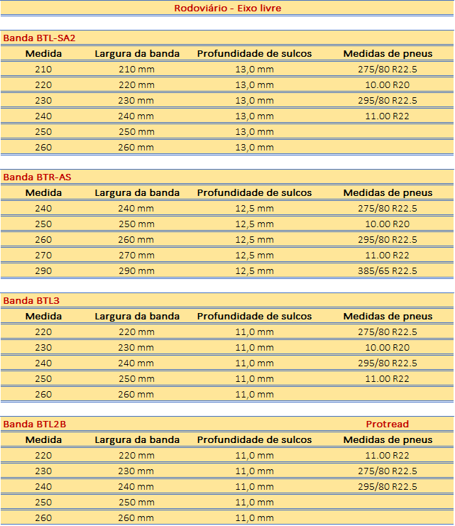 - A BTL3 atende as principais dimensões de pneus do segmento rodoviário: 295/80R22,5; 275/80R22,5; 11.00R22 e 10.00R20.