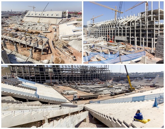 A Arena Corinthians ou “Fielzão”, localizado em Itaquera, terá capacidade para 65 mil lugares e de 3,5 mil vagas de estacionamento. Com um investimento total de R$ 820 milhões, a obra está em andamento com 45% da construção completa.