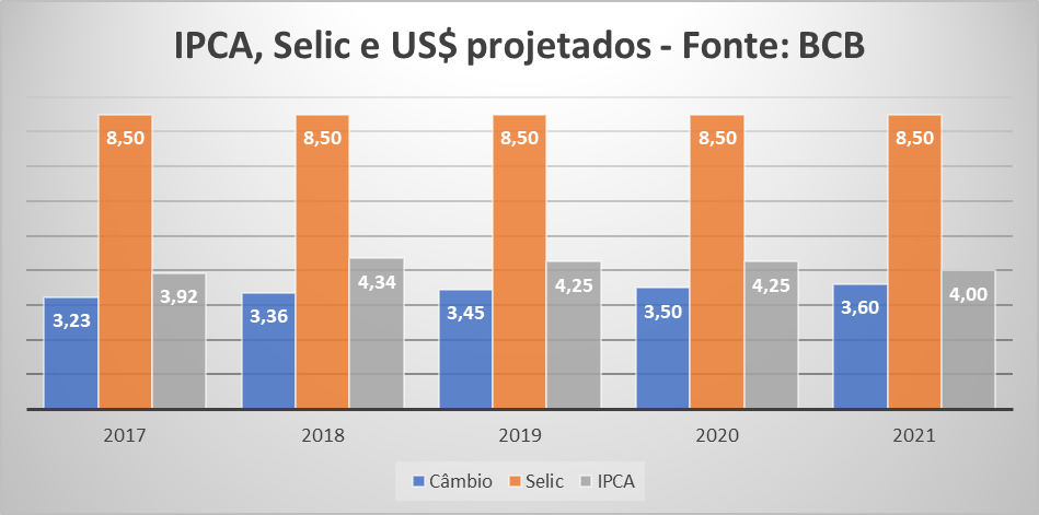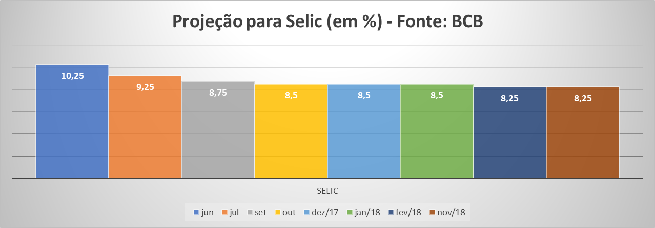 Neste momento em que o ambiente político se mostra totalmente conturbado, a Selic promete se manter em rota de baixa, conforme mostra o quadro abaixo: