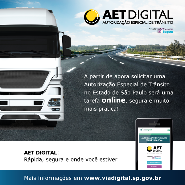 Veículos ou combinação de veículos utilizados no transporte de carga que não se enquadrem nos limites de peso e dimensões estabelecidos pelo Conselho Nacional de Trânsito (CONTRAN) ganharam, nesta segunda-feira, 02, Autorizações Especiais de Trânsito (AET) com emissão digital, eliminando o serviço de balcão.