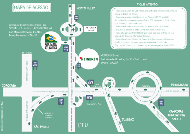 Com o objetivo de integrar a comunidade com o Centro de Experimentos Florestais SOS Mata Atlântica – HEINEKEN Brasil, a ONG apresenta dia 12 de agosto, das 9h às 12h, em Itu (SP), as atividades de restauração florestal realizadas no local, uma antiga fazenda de café cedida pela Heineken, que conta com um viveiro com capacidade para produzir cerca de 750 mil mudas de árvores nativas por ano de mais de 100 espécies.