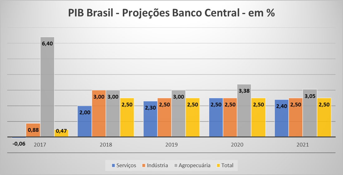 Estimativas elaboradas pelo Banco Central do Brasil, com base em pesquisas realizadas junto ao mercado financeiro, mostram que os setores de Serviços e, principalmente, a Indústria tendem a apresentar maior dinamismo em suas atividades a partir deste segundo trimestre de 2017.