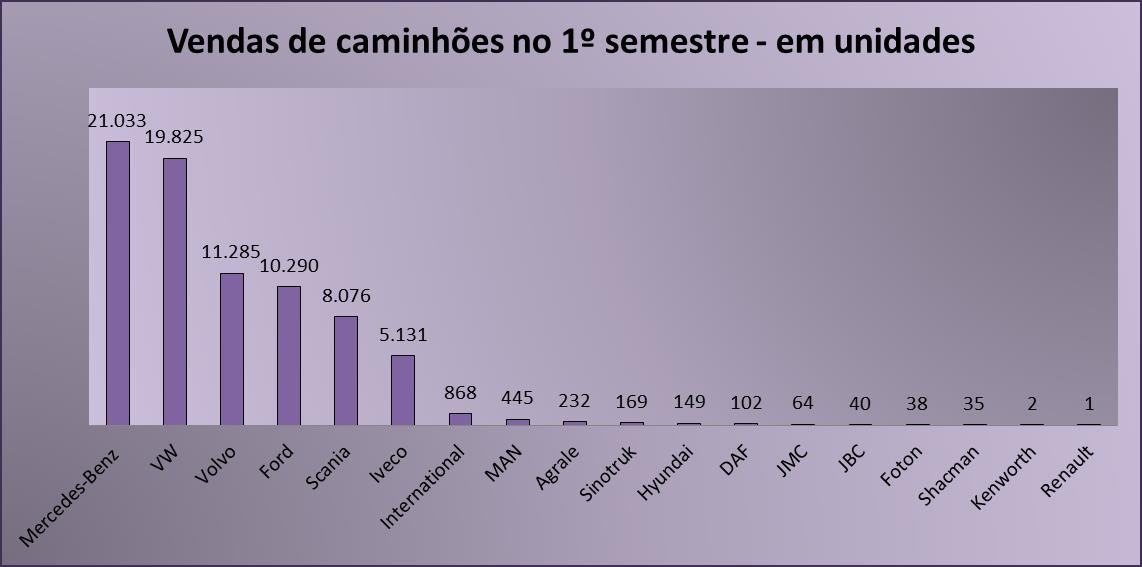 De janeiro a junho deste ano, as vendas de caminhões apresentaram recuo de 13,18%, aponta relatório semestral formulado pela Federação Nacional da Distribuição de Veículos Automotores (Fenabrave), divulgado na última sexta-feira, 01.
