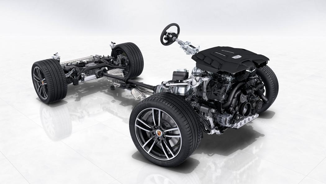 A tração é integral e gerenciada pelo Porsche Traction Management (PTM – gerenciamento de tração) sistema inteligente e totalmente variável que distribui a força de tração entre os dois eixos. A tração, chassi e travamento dos diferenciais também podem ser selecionados.