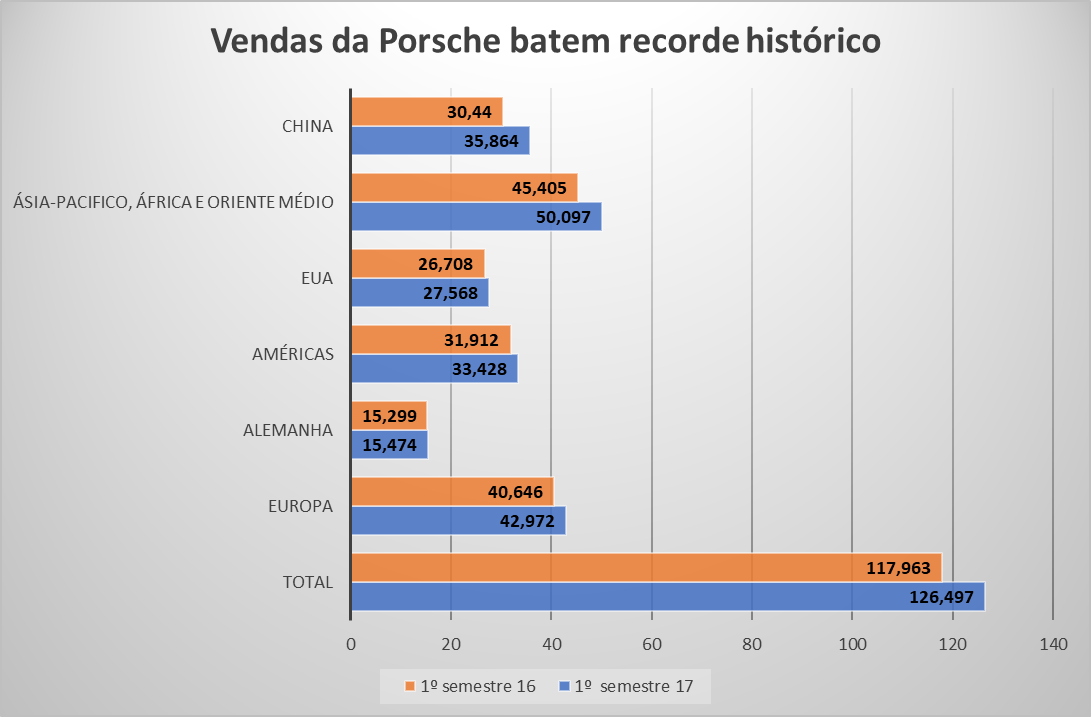 A Porsche obteve no primeiro semestre deste o melhor resultado de vendas para o período em sua história: 126.497 unidades e expansão de 7% comparativamente ao primeiro semestre do ano passado.