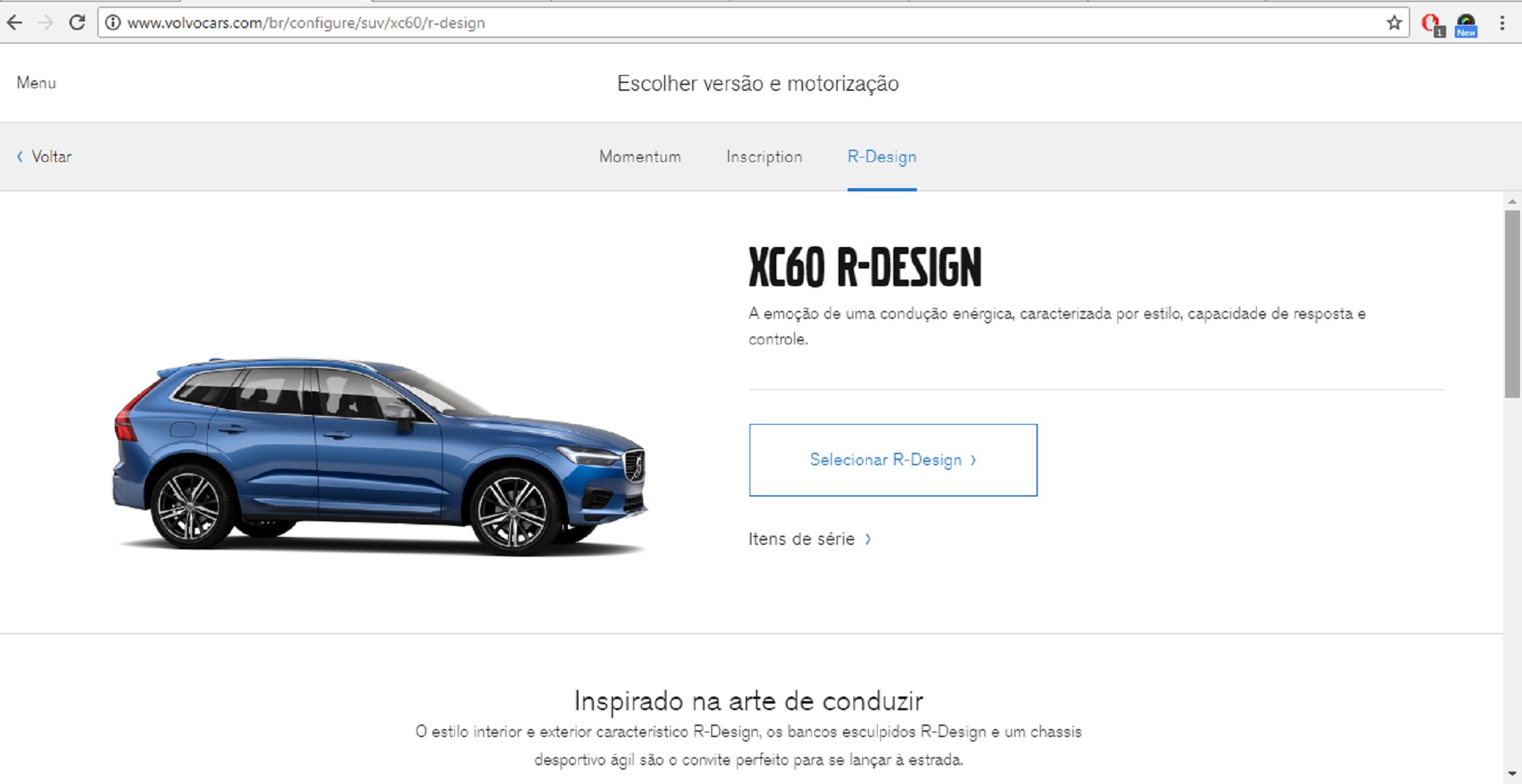 Esse link permite escolher entre as três versões programadas para venda no Brasil – o modelo ainda está na fase de pré-venda – a saber: Momentum, Inscription e R-Design.