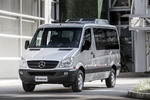 As vans Sprinter disponíveis têm capacidade para 9 ou 15 passageiros, além do motorista.