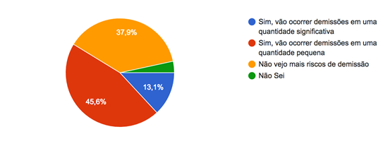 45,6% das respostas ainda sentem que o mercado ainda deve conviver com demissões, porém em pequena escala.
