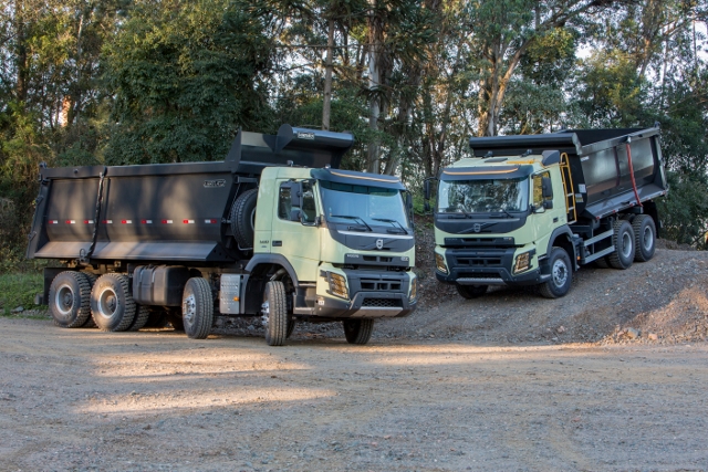 Segundo a Volvo, o FMX também ganha a opção de eixo para 150 toneladas de PBTC (Peso Bruto Total Combinado) e caixa de câmbio eletrônica I-Shift configurada para operações off-road.