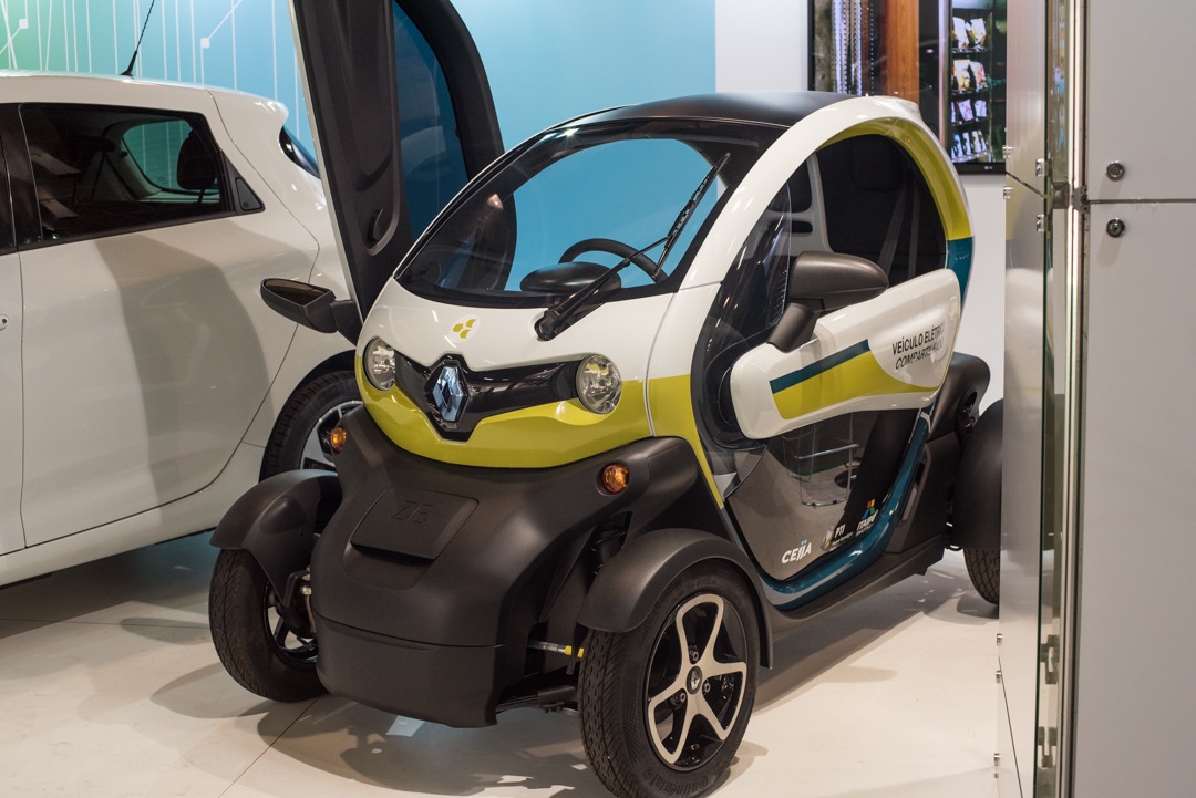 O Renault Twizy também foi lançado em 2012, tem peso de apenas 450 kg e mobilidade semelhante à de um veículo de duas rodas, mas com a segurança de um carro, além de ser equipado com todas as tecnologias necessárias para veículos de passeio, como cinto de segurança e airbag.